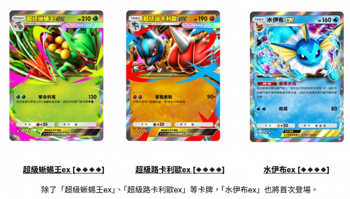 除了「超級蜥蜴王ex」、「超級路卡利歐ex」等卡牌,「水伊布ex」也將首次登場。