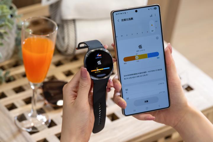 健康樂齡議題近期備受關注,抗氧化劑能中和自由基,抵禦氧化壓力,在老化的過程中發揮關鍵作用。Galaxy Watch8系列的抗氧化指數功能可在短短五秒內測量皮膚內的類胡蘿蔔素濃度,亦即「抗氧化指數」,並提供實用的飲食改善建議,助用戶維持青春活力。