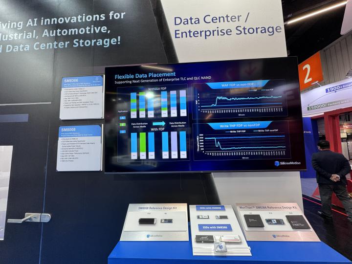 除了開機儲存產品組合外,慧榮科技亦展示 MonTitanR 企業級 SSD 控制晶片解決方案,包括 SM8366。該產品針對 GPU 鄰近運算、運算型、Nearline 與邊緣伺服器部署進行最佳化。SM8366 PCIe Gen5 企業級 SSD 控制晶片專為高效能 AI 基礎架構設計,可為 GPU 加速運算環境提供高效資料傳輸與可擴充的儲存架構。
