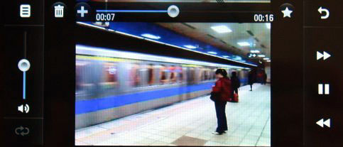 不過可惜錄影的畫面只有 640x480 (3gp 檔案) ,沒有充分利用寬螢幕優勢,此時播放時,螢幕兩旁便是控制鍵: