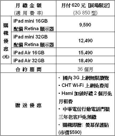 展場限定:iPad Air/iPad mini Retina月付只要$620享3G+Wi-Fi無限瀏覽
