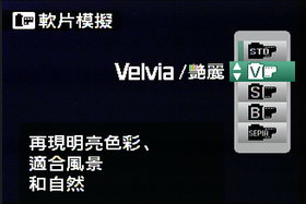 F200exr 支援五種軟片模擬模式,分別是 PROVIA(標準)、Velvia(艷麗)、ASTIA(柔和),以及黑白、棕褐色: