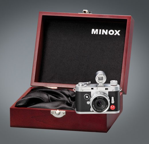 MINOX DCC5.1古典套組木盒黑色精裝版相機,加贈選購配件真皮皮套及頸帶,完整組合耶誕價NT$11,800元〈數量有限,原價NT$13,800元〉。