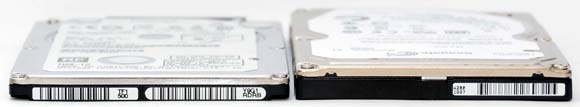 左: Hitachi Z7K500; 右: 一般 9.5mm 硬碟