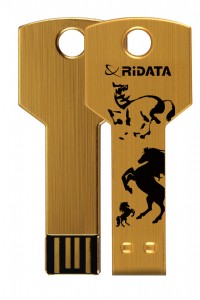 為了開心迎接馬年的到來,錸德科技延續著龍馬精神的設計概念,以OD9尊貴的金色機身,結合駿馬奔馳的圖樣設計,推出充滿過年喜氣,限量版的RIDATA馬年造型隨身碟。RIATA限量版馬年隨身碟,非常輕薄,體積僅2.6 mm,可任意放入於皮夾、名片夾等小型隨身物品;機體本身以鑰匙為其設計款式,頂部再嵌入圓形吊環扣,並貼心附上鑰匙圈吊飾,讓馬年好運勢能夠時時伴隨。